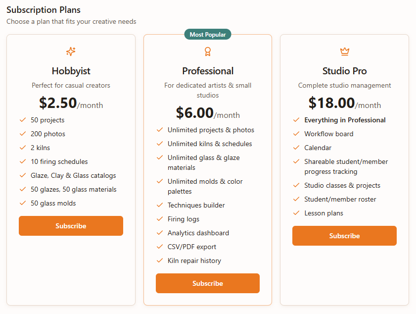 Track supplies, vendors, and equipment. Log kiln maintenance and repair history. Calculate firing costs. Keep the business side of your studio as organized as the creative side.